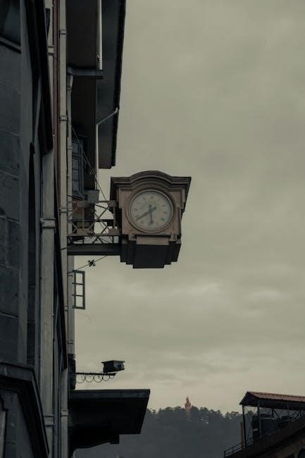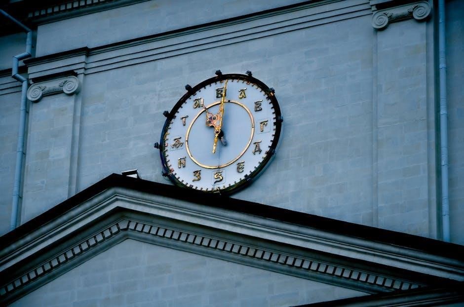 The Waltham 31 Day Chime Wall Clock features a precision pendulum mechanism that ensures accurate timekeeping. The pendulum is powered by the mainspring and swings rhythmically, regulating the clock’s movement. To set it up, attach the pendulum to the leader, hang it from the suspension spring, and gently swing it to start. Proper installation and alignment are crucial for maintaining the clock’s precision. The pendulum’s consistent motion adds to the clock’s aesthetic and functional appeal, making it a central element of its design.